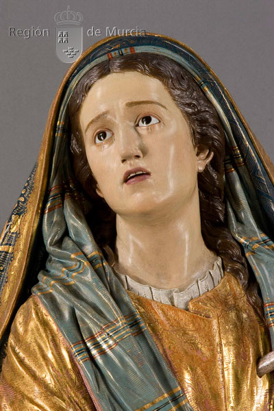 - Técnica: Madera tallada y policromada con estofas
