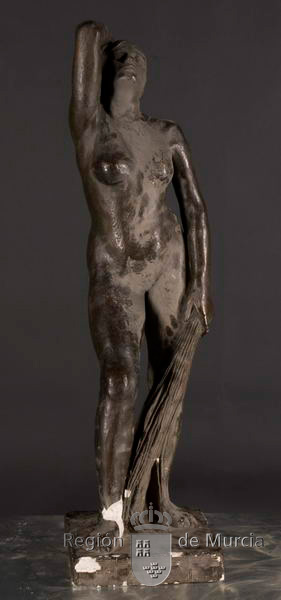 Se trata de una escayola patinada simulando bronce. Debido al diseño de la pieza, el peso y su propia estructura matérica se apreciaban grietas importantes en los tobillos de la escultura. Las placas radiográficas nos muestran dos grandes hierros que sirven de sustento a la pieza, siendo al mismo tiempo un material que por su dureza favorece el agrietamiento de la escayola que lo envuelve. También se han verificado pérdidas importantes de soporte. Toda la obra estaba cubierta por una gruesa capa de suciedad.