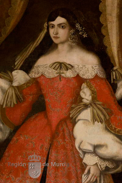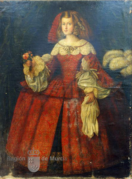 Al llegar para su intervención al Centro de Restauración, se trataba de un "retrato de infanta", un repinte historicista decimonónico sobre la base del retrato original de una dama al estilo criollo. Procede de la Colección Noguera. Inicialmente, de acuerdo con su apariencia decimonónica fue recogido en el catálogo del Museo de Bellas Artes de Murcia como un retrato femenino que plasmaba las características de la serie velazqueña de los retratos reales, como el de Dña. Mariana de Austria.