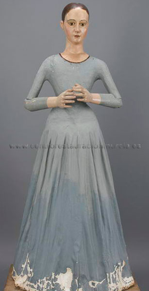 Considero que estamos ante una pieza de indudable interés ya que marca una serie de parámetros plásticos y estéticos enraizados en un barroco ya atemperado y tamizado por el gusto del primer tercio del siglo XIX, a quien debe esa impronta de artificiosa belleza. Los rasgos estereotipados y un tratamiento somero de algunas partes (orejas, dedos, cejas,) se combinan certeramente con la suntuosidad de los adminículos y ropajes recreando, sin lugar a dudas, una de las advocaciones de la Virgen más hermosas de Murcia.