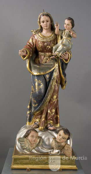 Esta talla resulta muy sencilla en su configuración plástica pese a la suma de elementos en torno a las dos figuras principales. Rostros y actitudes quizá se aproximan demasiado a los arquetipos marcados desde el obrador de Salzillo aunque sin perder un ápice de belleza y originalidad.; carnaciones, policromías, sencillas estofas en cenefas, bordes de paños y nube conforman un conjunto de gran sencillez donde destacan las tallas de la Virgen y el Niño. La de éste presenta un discreto estudio de desnudo infantil donde la morbidez del cuerpecito se yuxtapone a la imagen de la Madre, talla de soluciones sencillas en el movimiento de paños, sin apenas guarniciones decorativas, pero plasmando los ricos espolinados o brochados de tradición dieciochesca.